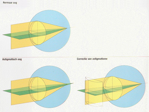 Het oog is optisch vergelijkbaar met een fotocamera. Door een lenzensysteem wordt een beeld op de “film” van het oog, het netvlies geprojecteerd. Het lenzensysteem van een camera wordt met veel zorg gefabriceerd. De lenzen die worden gebruikt moeten voor honderd procent optisch zuiver zijn. Maar een oog groeit “vanzelf”. Bij die groei gaat natuurlijk wel eens wat mis. Zoals bij de één de neus groter is dan bij de ander, kan het ene oog ook groter zijn dan het andere. Met een neus is dat niet zo erg, maar bij het oog heeft dat meteen gevolgen voor de optische werking. Wanneer blijkt dat het oog iets te groot geworden is, dan is het optische systeem te sterk voor dat lange oog en moet dat met een min correctie worden gecorrigeerd. Bij een “te kort” oog is de optiek ervan dus te zwak en moet er een plus correctie voor.