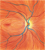 De oogzenuw; De afbeelding laat zien dat alle zenuwvezels bij elkaar komen in de oogzenuw. Het aantal oogzenuwvezels varieert van individu tot individu, maar bedraagt gemiddeld 1 miljoen. De oogzenuw heeft voor het normale functioneren een goede bloedtoevoer nodig. Vandaar dat er vele kleine bloedvaatjes aanwezig zijn in de oogzenuw.